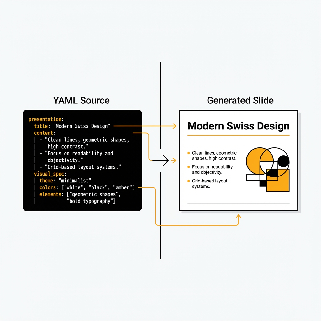 因為 YAML 是可版本控制的。當品牌調整主色時,你只需修改 color_palette.brand_red 這一行,所有後續產出的簡報都會自動套用新配色。這比每次都重新描述「我要紅色」有效得多。